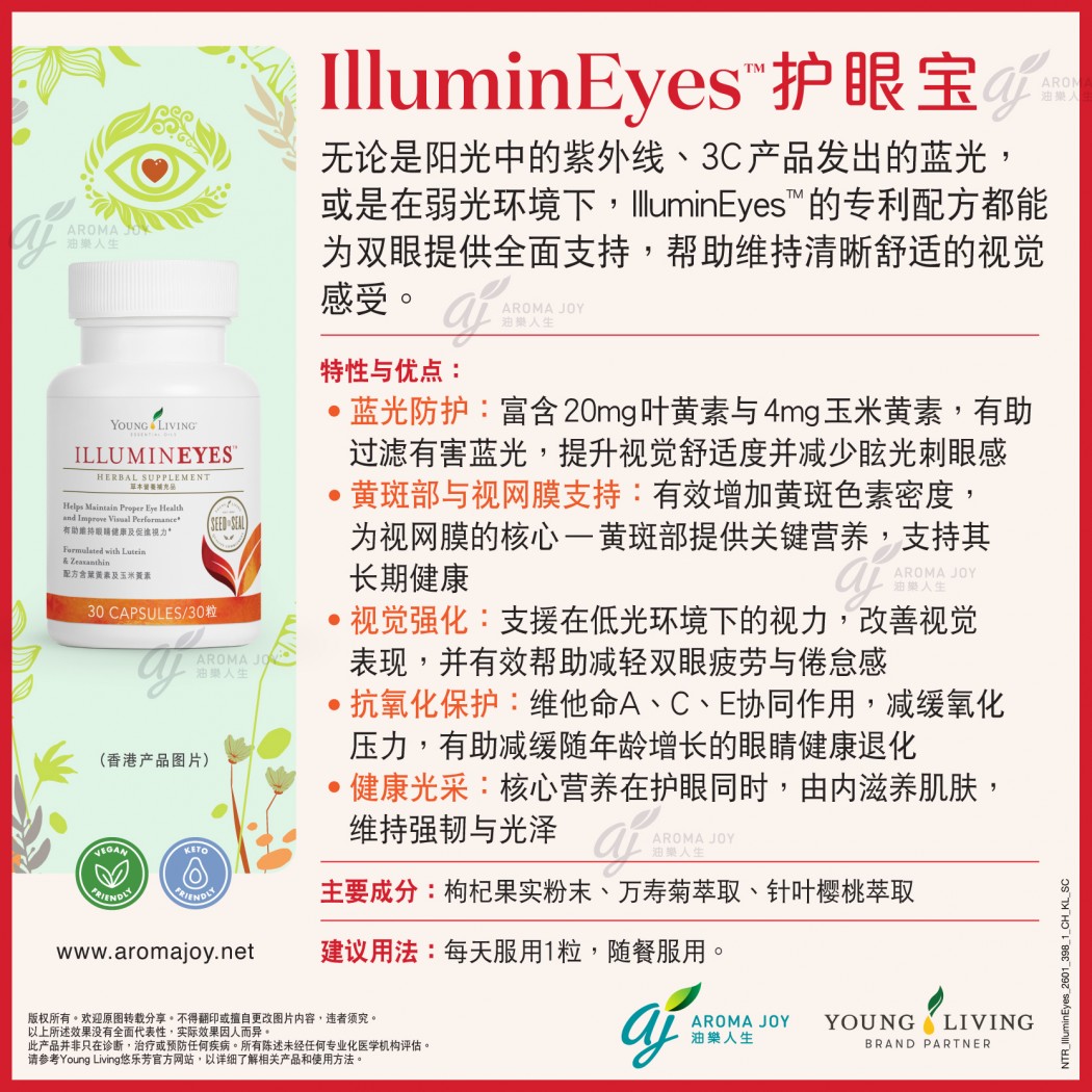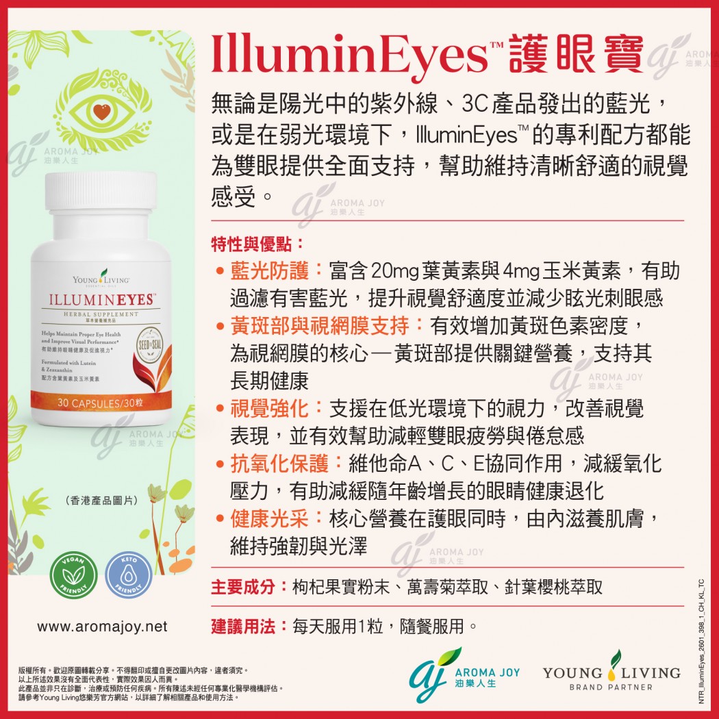無論是陽光中的紫外線、3C產品發出的藍光,或是在弱光環境下,IlluminEyes™ 的專利配方都能為雙眼提供全面支持,幫助維持清晰舒適的視覺感受。