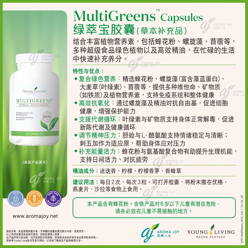 結合豐富植物營養素,包括蜂花粉、螺旋藻、苜蓿等,多種超級食品綠色植物以及高效精油,在忙碌的生活中快速補充養分。