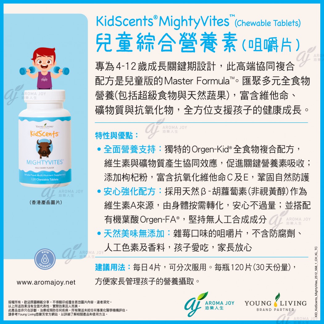 專為4-12歲成長關鍵期設計,此高端協同複合配方是兒童版的 Master Formula™。匯聚多元全食物營養(包括超級食物與天然蔬果),富含維他命、礦物質與抗氧化物,全方位支援孩子的健康成長。