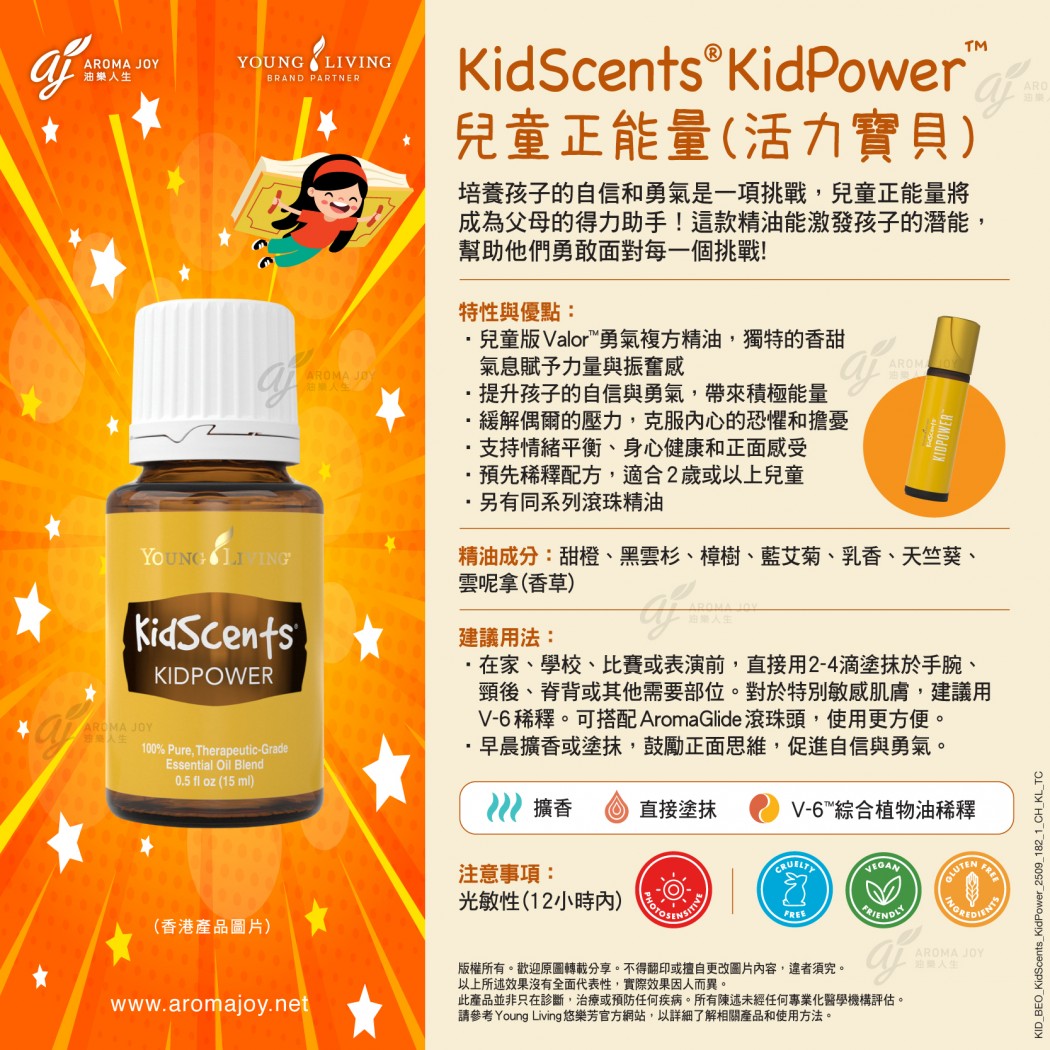 香氣激發信心,赋予勇氣 創造令人倍感舒適的環境 支持情緒,讓孩子感受平衡、幸福和積極 緩解日常壓力、偶爾的焦慮或緊張 有助於克服內在的懷疑、恐懼、擔心 建議用法 : 用1-2滴塗抹於手腕或後背。套上AromaGlide 滾珠蓋,更方便使用。兩歲以下幼兒,請加少許v-6按摩使用。