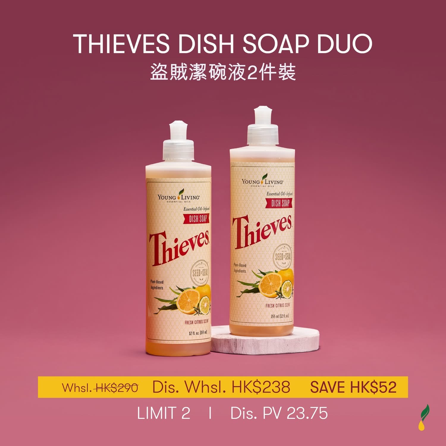 THIEVES DISH SOAP DUO 盜賊潔碗液採用獨特的Thieves盜賊精油配方,結合天然植物成分,提供強效清潔力的同時保護您的雙手。能快速分解油污和食物殘渣,讓碗盤恢復光亮潔淨。溫和配方不傷手,天然精油香氛讓洗碗時光更加愉悅。2件裝組合讓您以更經濟實惠的價格享受天然潔淨體驗,是家庭清潔的理想選擇!
