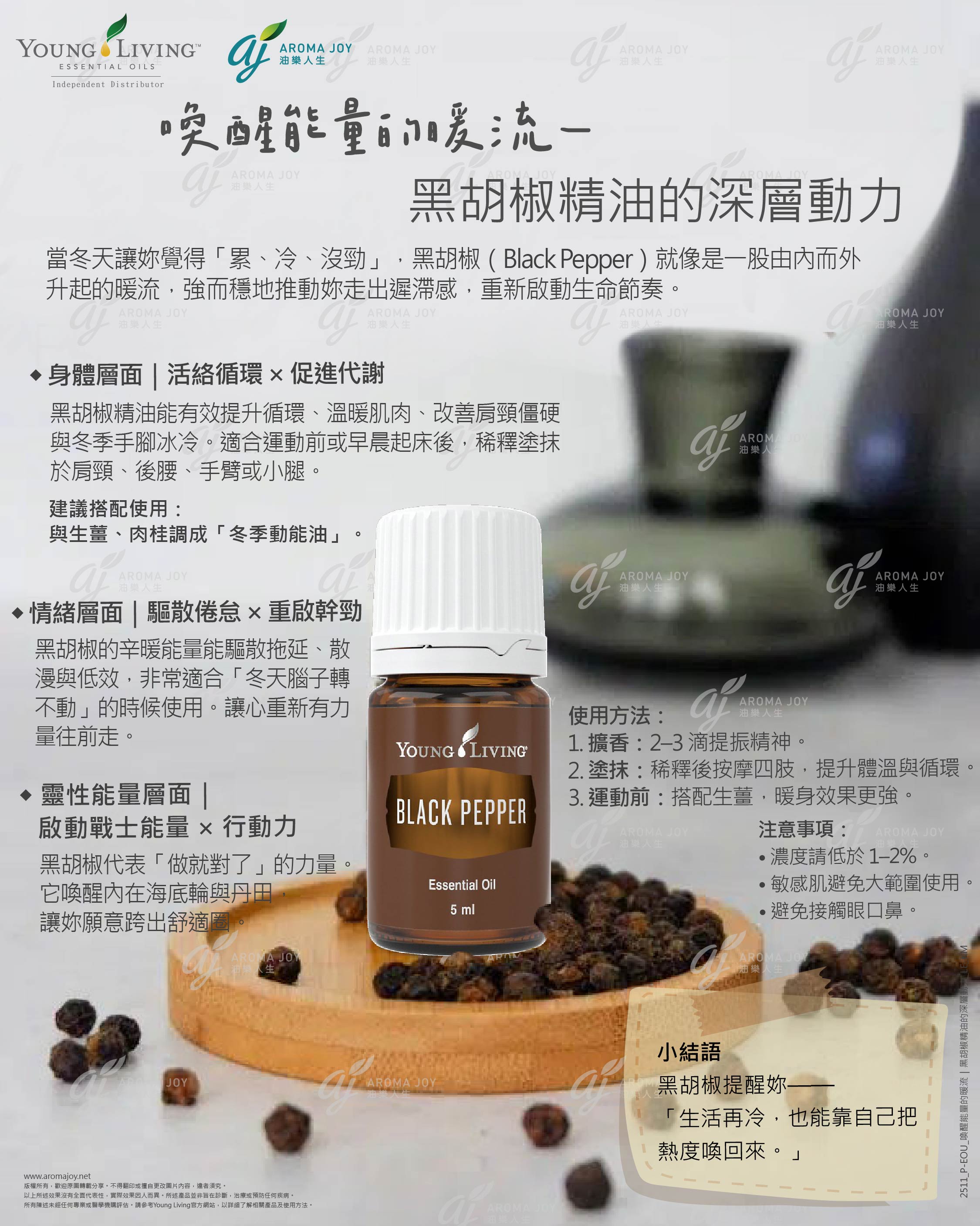 當冬天讓妳覺得「累、冷、沒勁」,黑胡椒(Black Pepper)就像是一股由內而外升起的暖流,強而穩地推動妳走出遲滯感,重新啟動生命節奏。