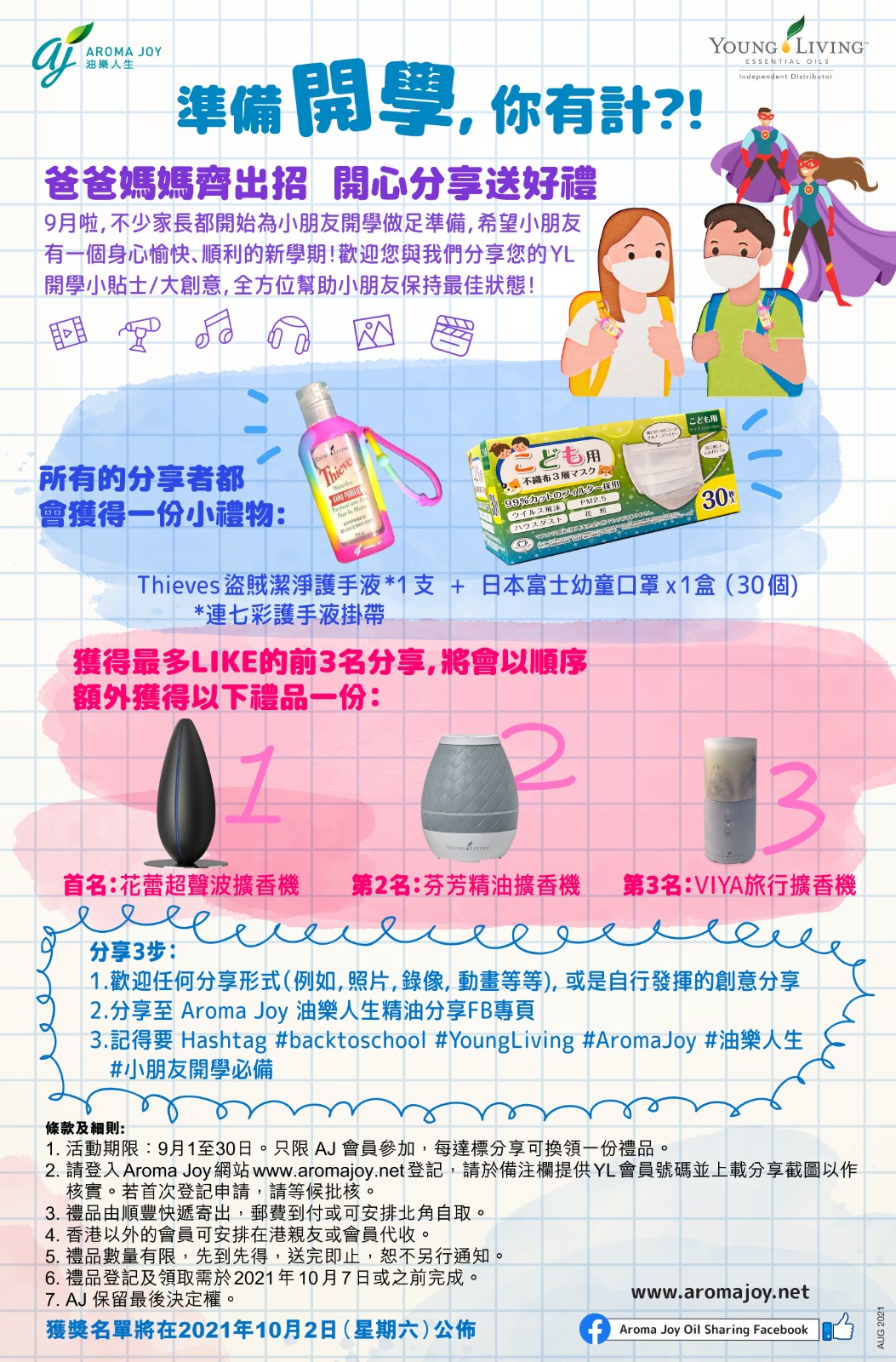 記得要 Hashtag #Young Living #AromaJoy #油樂人生 #小朋友開學必備