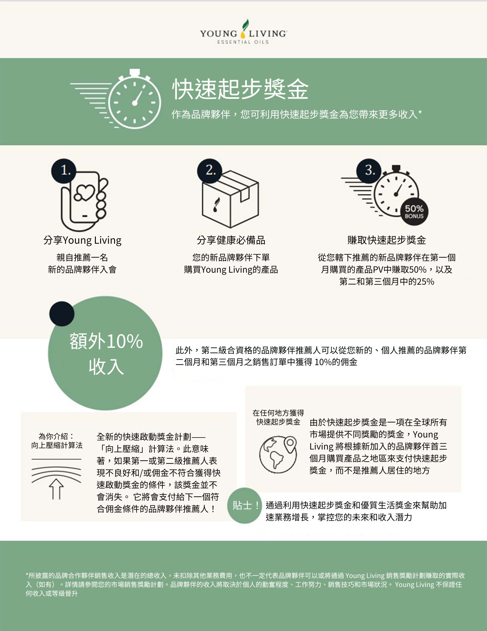 從2023年3月1日起,Young Living將會優化快速起步獎金,進一步支援您發展事業: