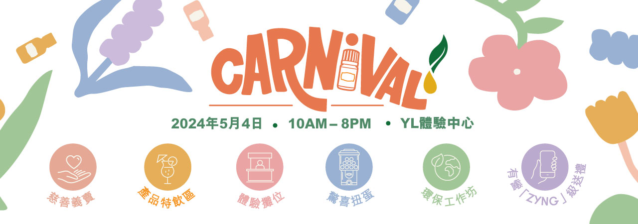YL Carnival 首次於5月4日 (星期六) 舉行!今年將以市集攤檔形式,會員負責不同類型的攤檔,透過不同的產品體驗讓您更了解 Young Living 的文化。不論您已經是YL的會員還是從未了解YL的新朋友,歡迎與親朋戚友一同參與其中,感受YL的獨特文化。