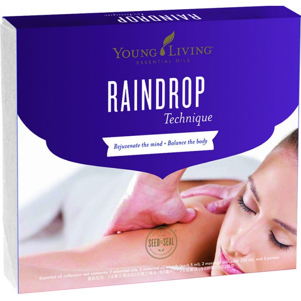 雨滴精油套裝融合純正精油的功效及傳統的獨特按摩手法助達致能量提升。有助創造靈性和寧靜的氛圍的同時,亦幫助賦活身心,達致身體和心靈上的內在平衡。 套裝包括: 7瓶5毫升單方精油:百里香、羅勒、薄荷、牛至、冬青、柏樹及馬鬱蘭精油; 2瓶5毫升複方精油: Valor™II, Aroma Siez™; 2支236毫升按摩油:Ortho® Ease Massage Oil按摩油及V-6™綜合純植物油